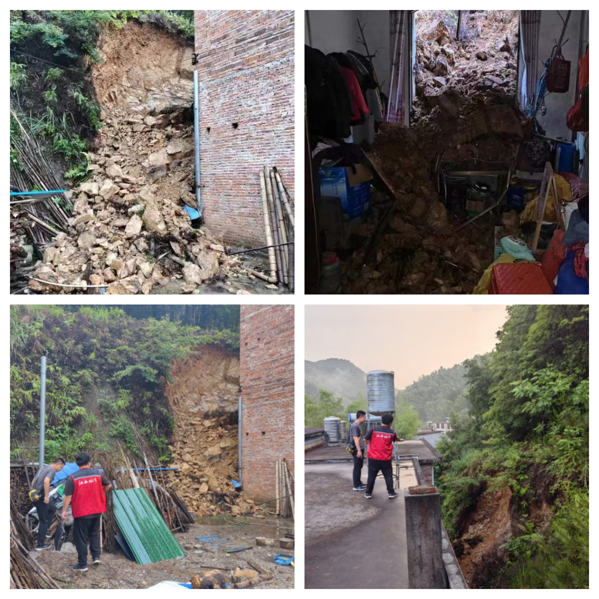 6月3日,吉村鎮(zhèn)突發(fā)短時強(qiáng)降雨。16時23分,災(zāi)害風(fēng)險隱患信息報送員黃宗鵬巡查時,發(fā)現(xiàn)張家然、蔡光楊、蔡光松等3戶農(nóng)戶屋后坡體不穩(wěn)定,有發(fā)生崩塌的危險,迅速向鎮(zhèn)領(lǐng)導(dǎo)報告。接報后,鎮(zhèn)政府于16時30分通知民主村村干部,要求立即轉(zhuǎn)移受威脅住戶。民主村兩委干部在接到轉(zhuǎn)移通知后,迅速協(xié)同村江壩小組干部,動員3戶10人轉(zhuǎn)移,16時45分人員轉(zhuǎn)移完成。17時40分左右,3農(nóng)戶屋后坡體發(fā)生崩塌。崩塌體橫向?qū)捈s10米,縱向長約6米,厚度約2米,崩塌體方量約120立方米,導(dǎo)致張家然房屋窗戶及室內(nèi)物品損壞。由于隱患發(fā)現(xiàn)與報告及時、轉(zhuǎn)移處置及時,未造成人員傷亡。崩塌發(fā)生后,因崩塌點(diǎn)仍處于不穩(wěn)定變形中,鎮(zhèn)政府決定在現(xiàn)場拉好警戒線,樹立警示牌,禁止無關(guān)人員進(jìn)出,并安排群測群防員24小時監(jiān)測。